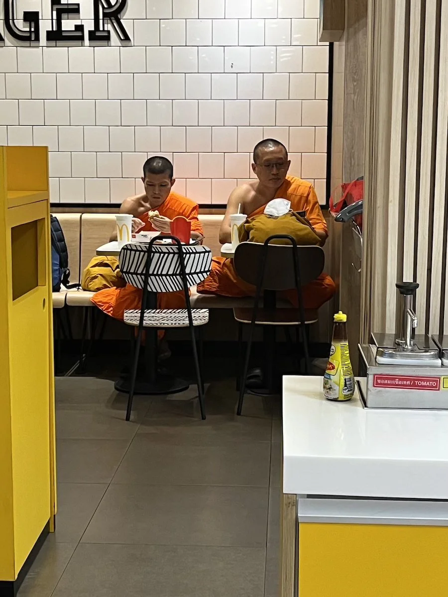 What should have been a gigantic moment of relief turned into my own personal Carrie moment. In the airport, at breakfast, I covered the red plastic seat of the McDonald’s in menstrual blood - while seated beside Buddhist monks munching on French fries. Thankfully, I was wearing black pants and able to clean myself up in the bathroom but I felt like a teenage girl caught unaware in gym class.