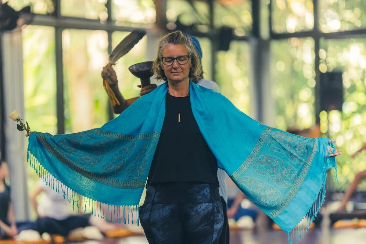 Kez was the one who jumped up at my certification ceremony and danced with me. I was the one who dumped a basket of flowers on his head and when all the endless hours on the mats, in the shala, were finally over, it was Kez and me in the dressing room, just smiling at each other with those stupid grins on our faces that always mean, “I see you over there, leveling up and shedding old selves, you crazy motherfucker, you. I am here and I am your witness.”