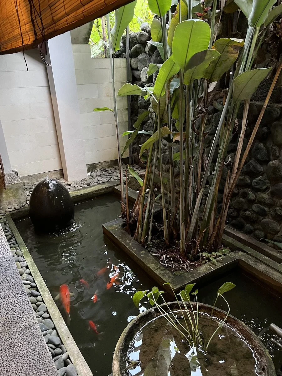 Thankfully, our sweet, peaceful and spotless villa was tucked away down a long alley, an oasis in the midst of Ubud’s chaos. From my outdoor living room, I could hear the drums of The Yoga Barn, where I’d be studying yoga. We were introduced to Desak, our pembantu, our housekeeper, who provided us with keys, explained her cleaning schedule and the frequency of the rituals that needed to be performed in the villa.